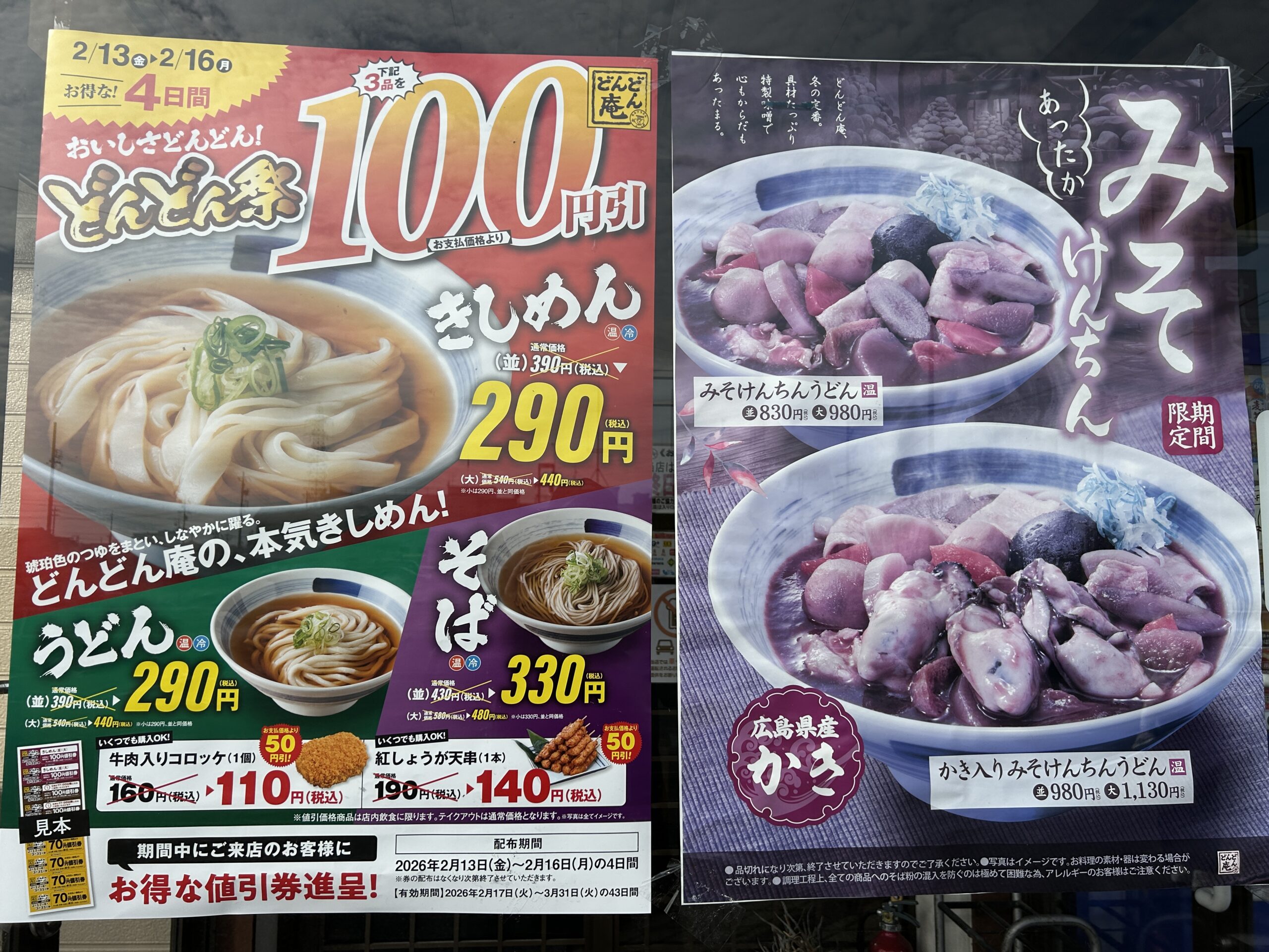 どんどん庵は、愛知県を中心に東海地方で広く展開されているセルフ方式のうどんチェーン店。